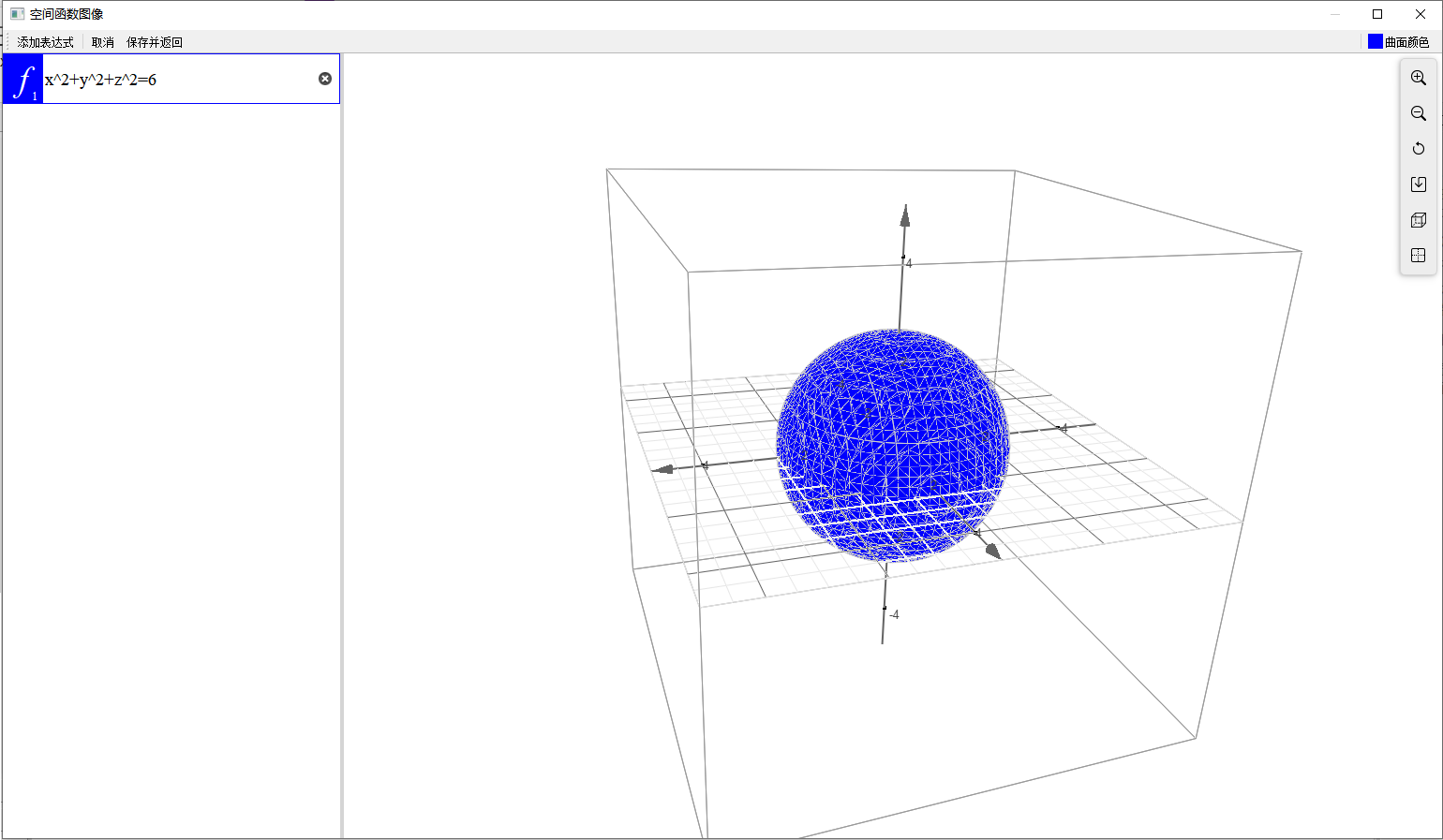 在“空间函数图像”对话框中,可以添加多个函数。空间曲面除了支持一般的二元函数图像外,也支持隐式函数的绘图,例如: