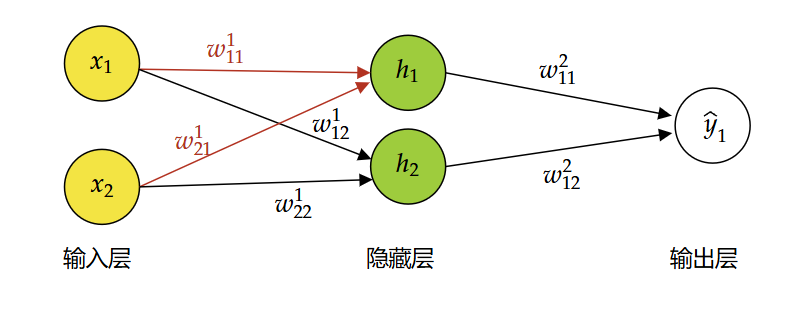 - 步骤 1:计算输出层权重的梯度$ \begin{bmatrix} w_{11}^2 & w_{12}^2 \end{bmatrix} \quad (1\times 2)$